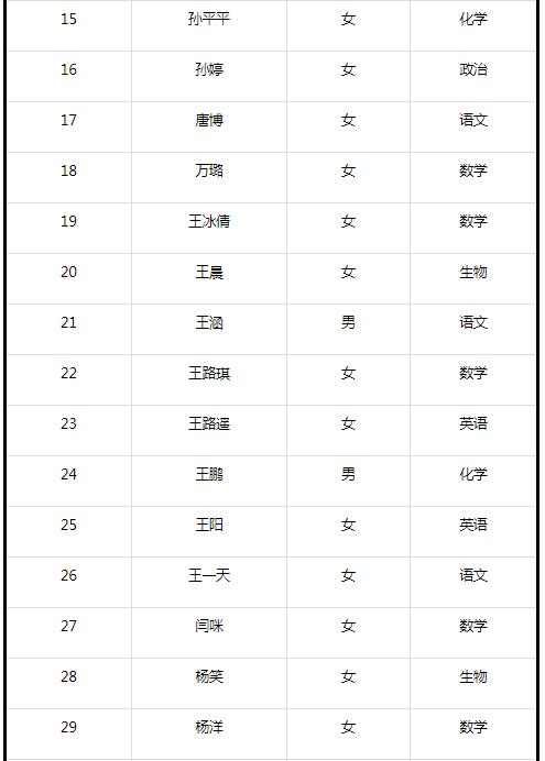 通过资格审查、讲课面试、体检政审等程序,两次招聘最终签约聘用33人,现公示如下: