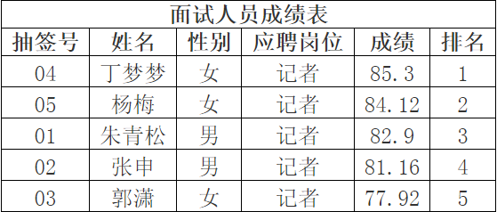 一、参加面试人员成绩: