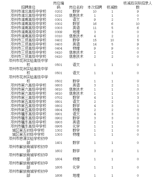 按照《2022年邓州市面向高校公开引进中学教师》1号公告要求需要核减的岗位: