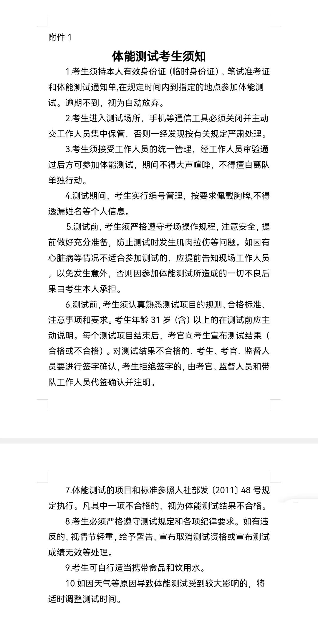 2.参加体能测试的考生要听从现场工作人员指挥,服从管理,认真阅读体能测试考生须知(见附件1),测试期间如身体出现异常,请及时告知工作人员。