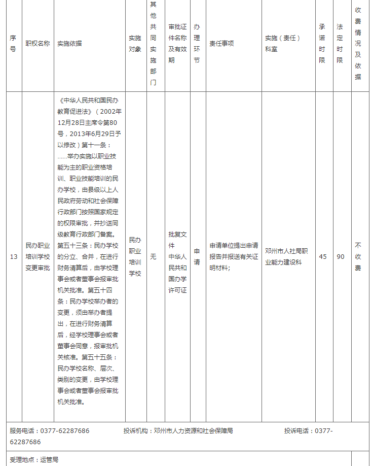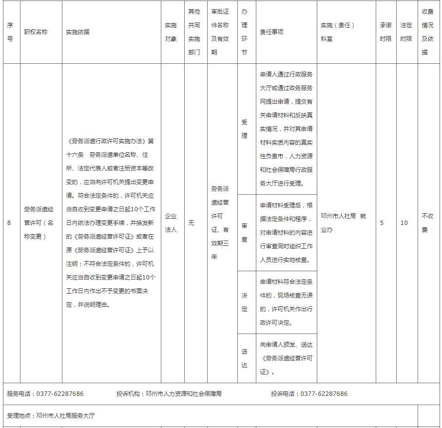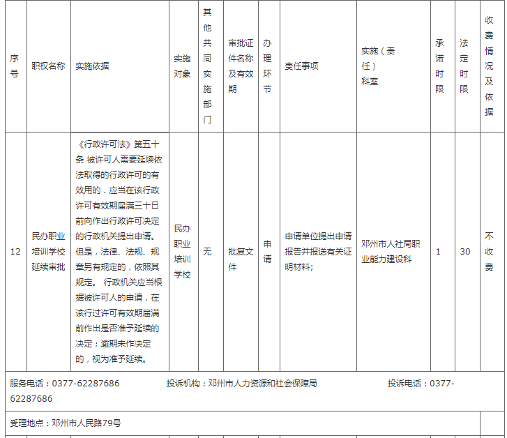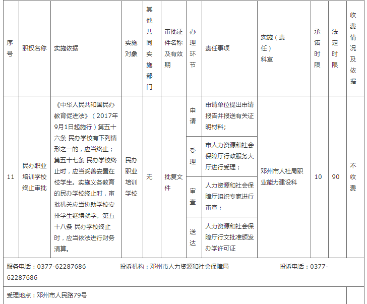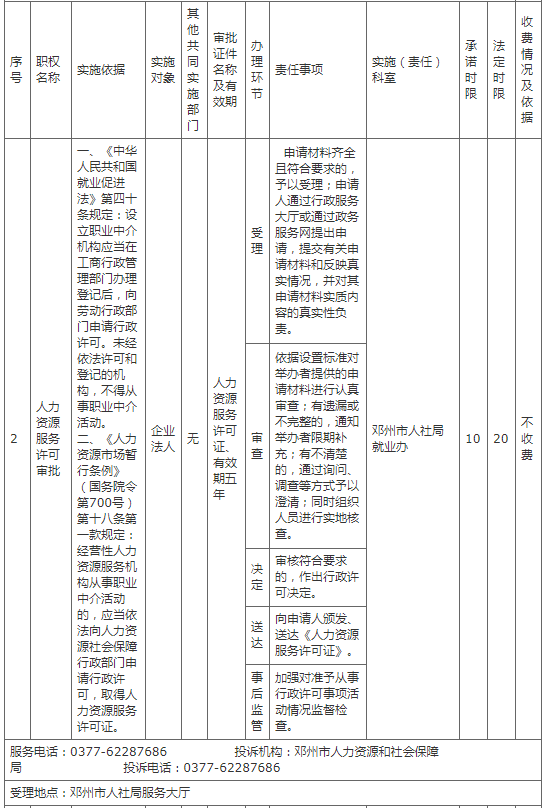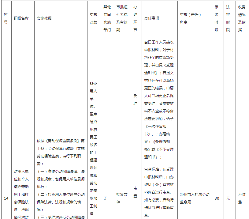 邓州市人社局权责清单