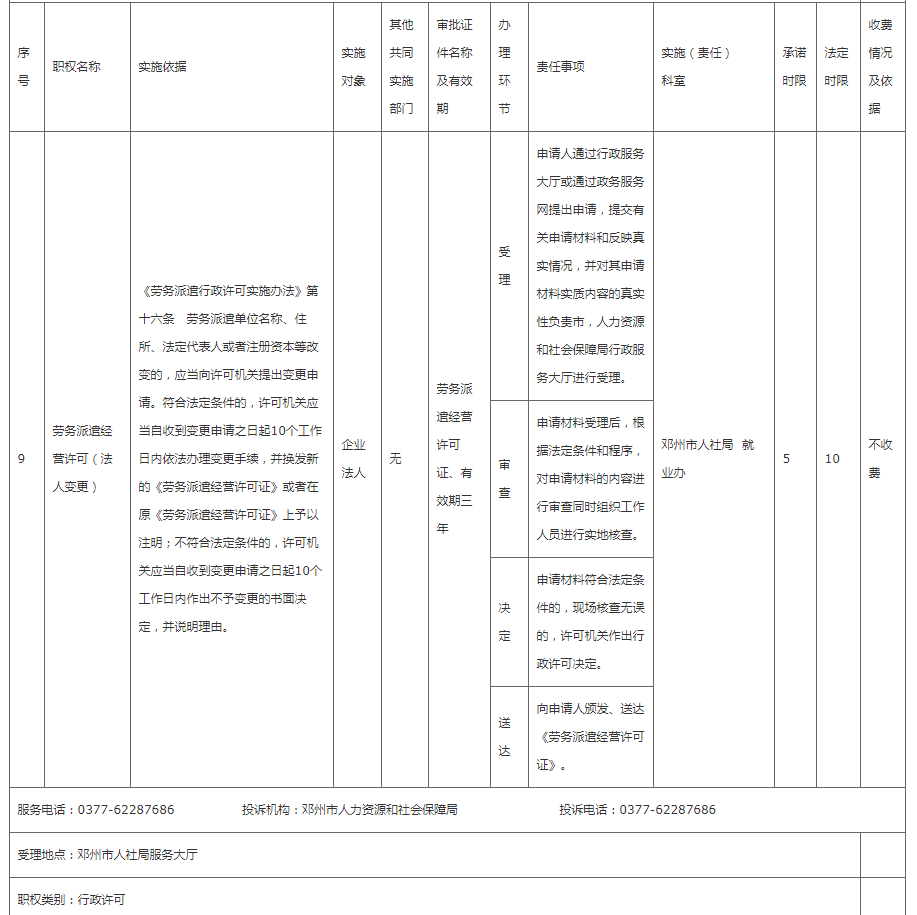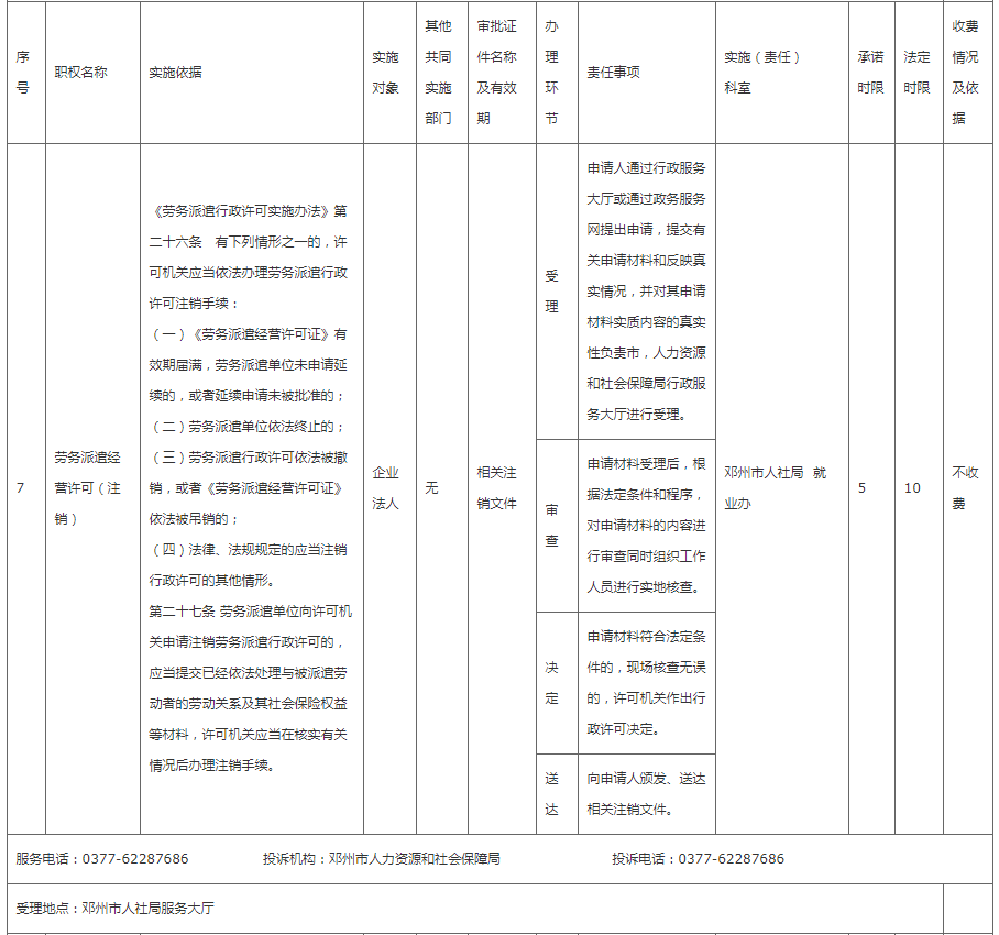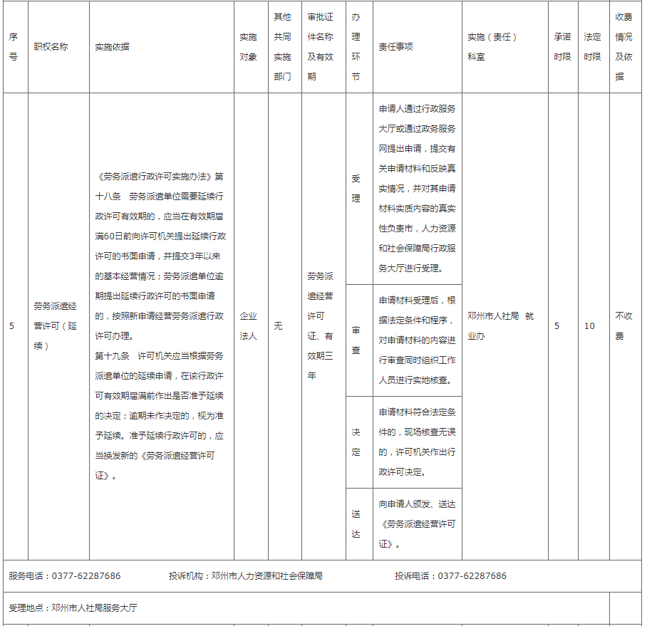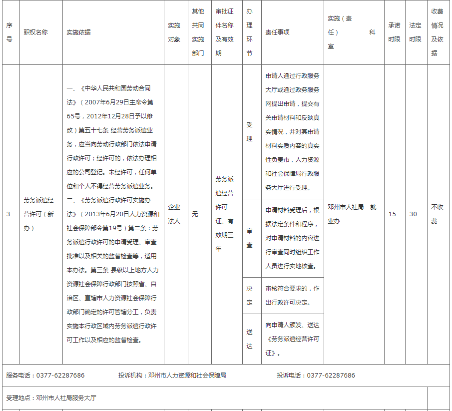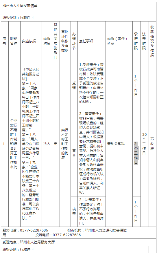 邓州市人社局权责清单