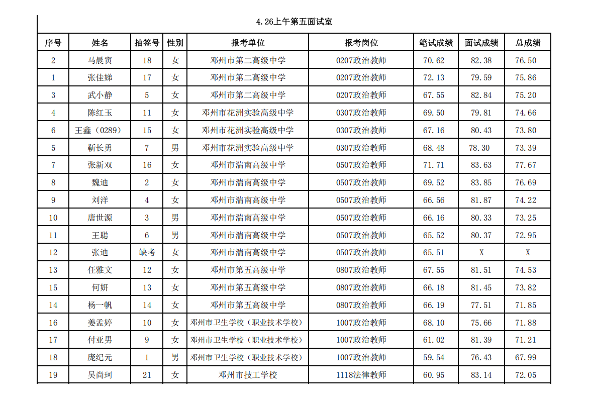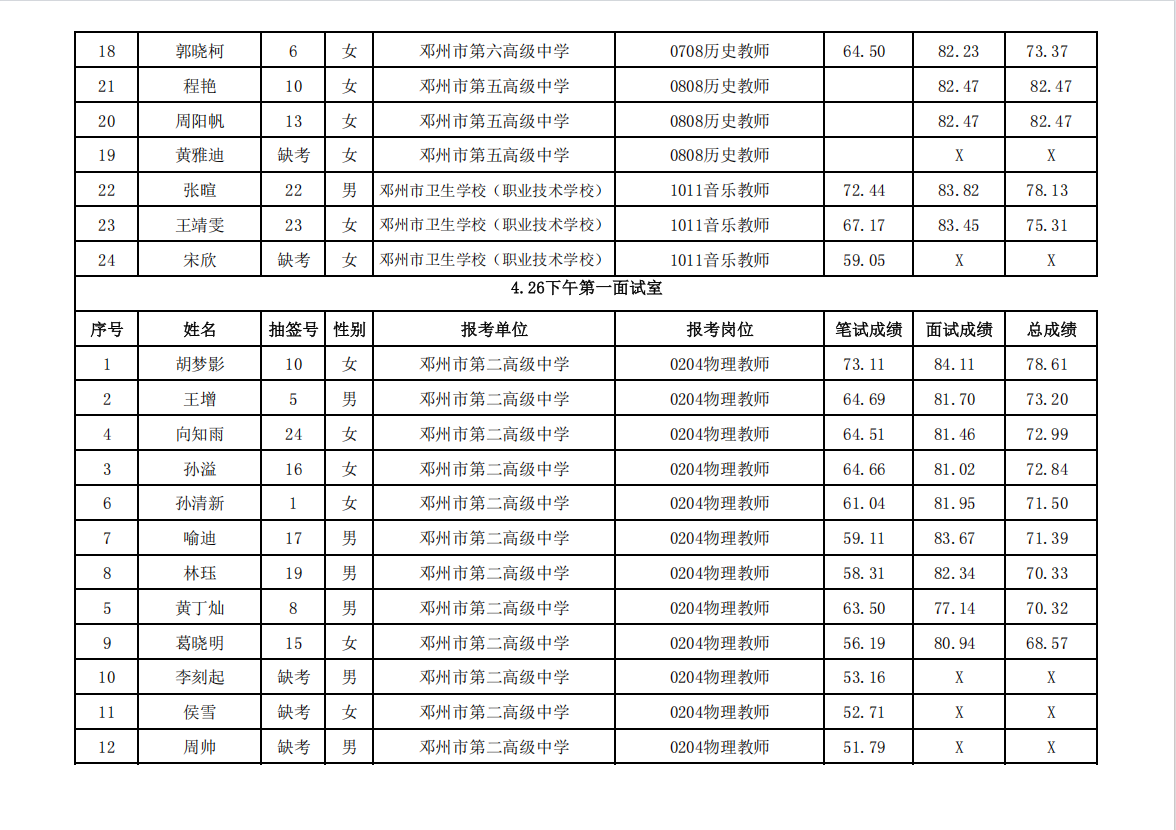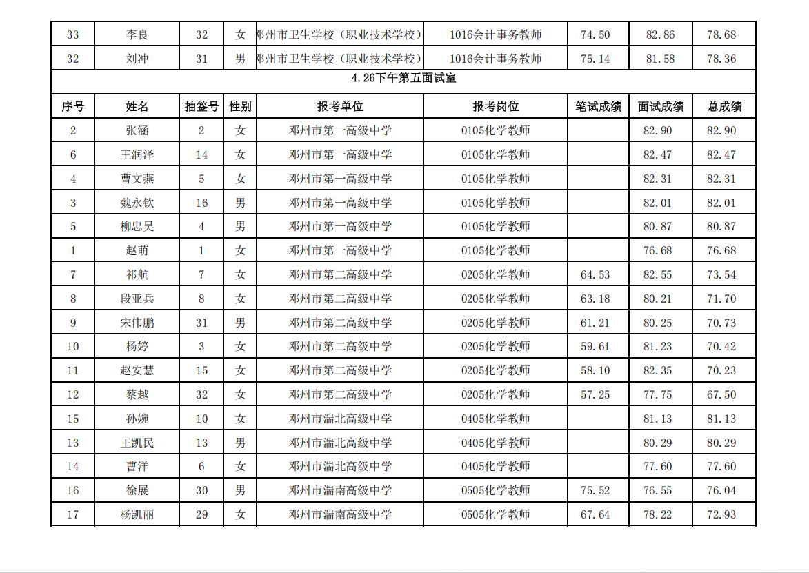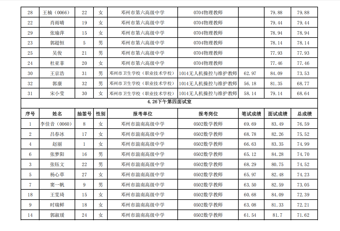 2025年邓州市公开引进高层次及其他专业技术人才面试工作已结束,现将有关事宜公告如下: