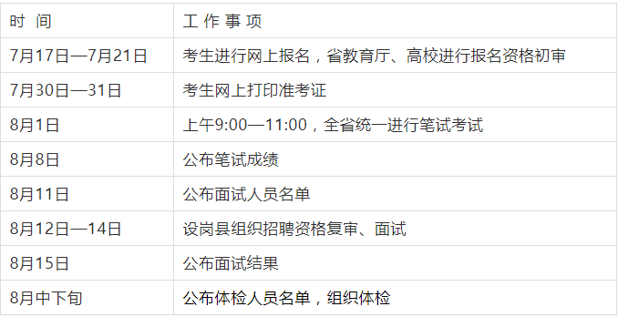 河南省2021年特岗教师招聘日程表