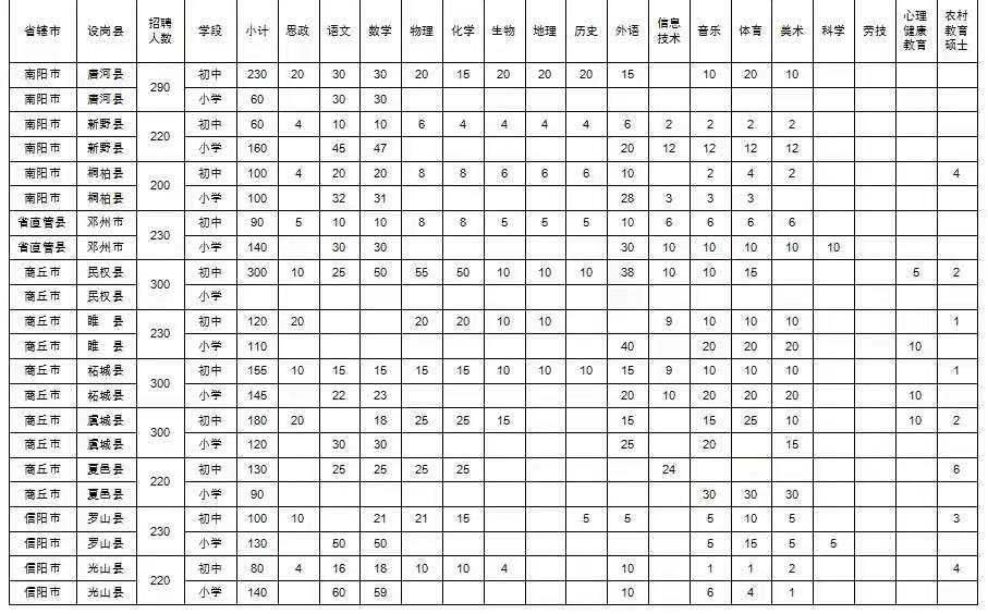 河南省2021年特岗教师招聘岗位设置